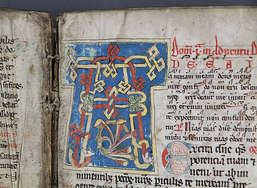 Der Buchblock des Messbuchs besteht aus Pergament, ist zwischen Holzdeckeln gebunden und mit Leder überzogen. Faszinierende Buchmalereien und dekorative Elemente schmücken das Missale.
