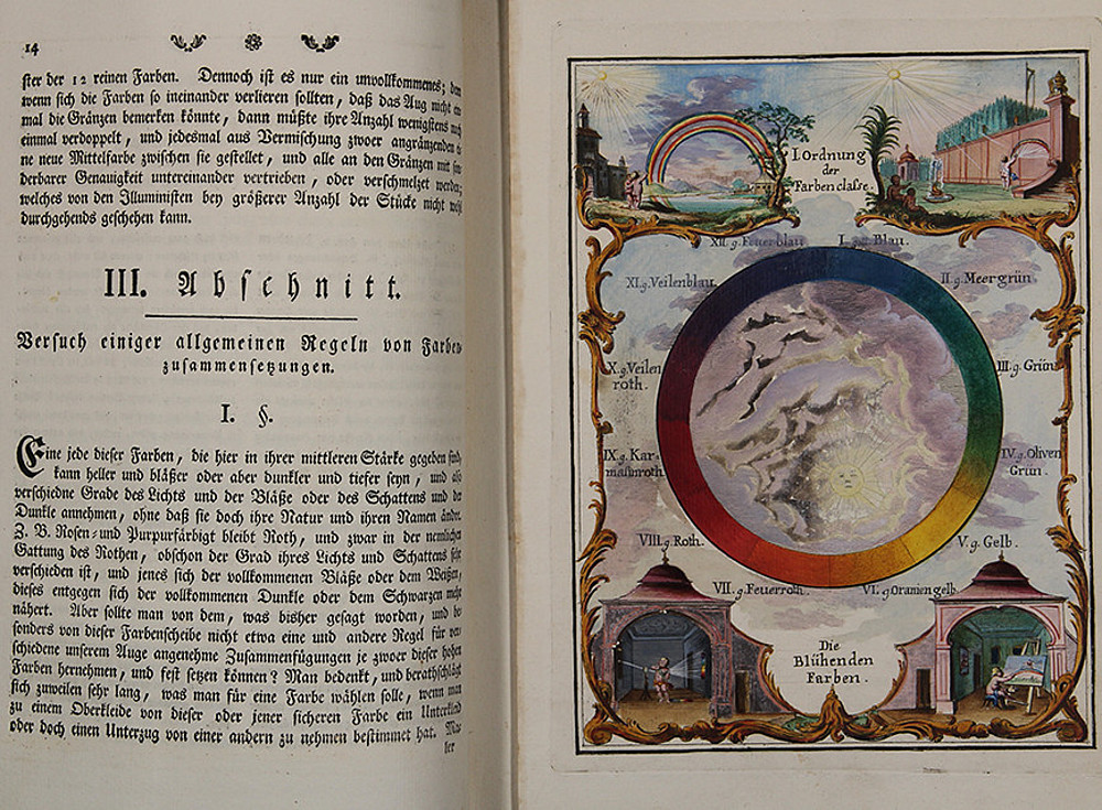 Das Werk Versuch eines Farbensystems enthält zwei sorgsam handkolorierte Blätter, von denen eines eine Beispielseite mit 36 Variationen der Farbe Blau abbildet und das andere ein Farbrad mit seinen verschiedenen Farbklassifikationen zeigt. Beide Illustrationen sind so eingefügt, dass sie sich herausfalten lassen, um während der Lektüre des Buchs betrachtet werden zu können.